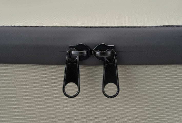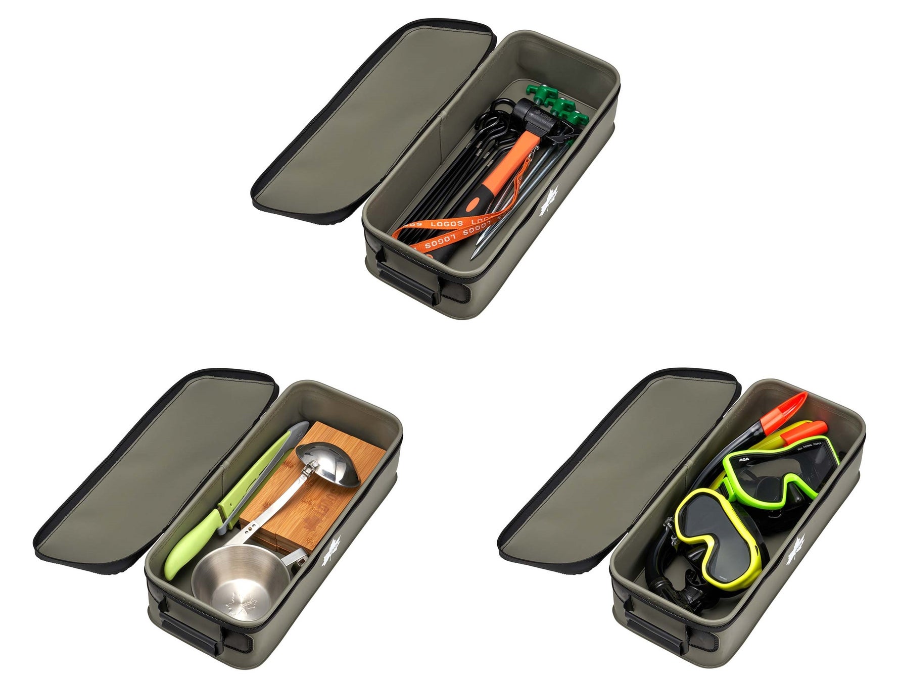 ボックス本体は水に強いEVA素材を採用し、ジッパー部分を止水ジッパーにすることでさらに防水性能がアップしました。キャンプの際に濡れて欲しくない小物などを収納しておくと、海や川でのアクティビティの際や突然の雨でも中身が濡れるのを防ぎます。朝露に濡れたキャンプ場の芝生でも安心です。