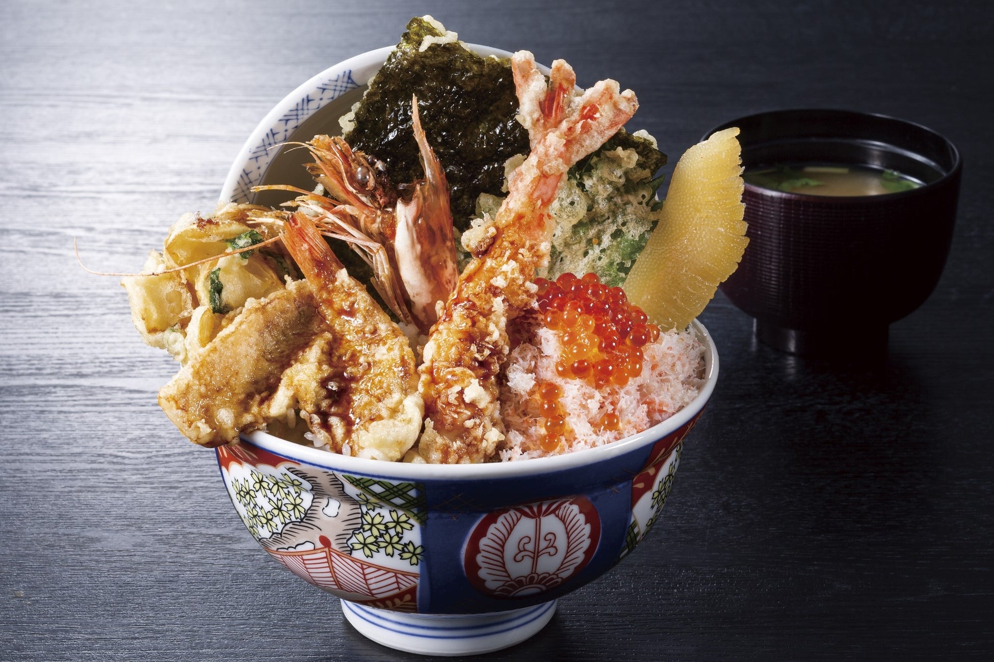 のどぐろ、ゆり根をひとつひとつ丁寧に天ぷらやかき揚げに仕上げ、彩り豊かに蟹といくらを盛りつけた今しか食べられない「冬の贅沢天丼」は、2022年の労いや新しく始まる2023年を祝う食事に選ばれることを想定して誕生しました。