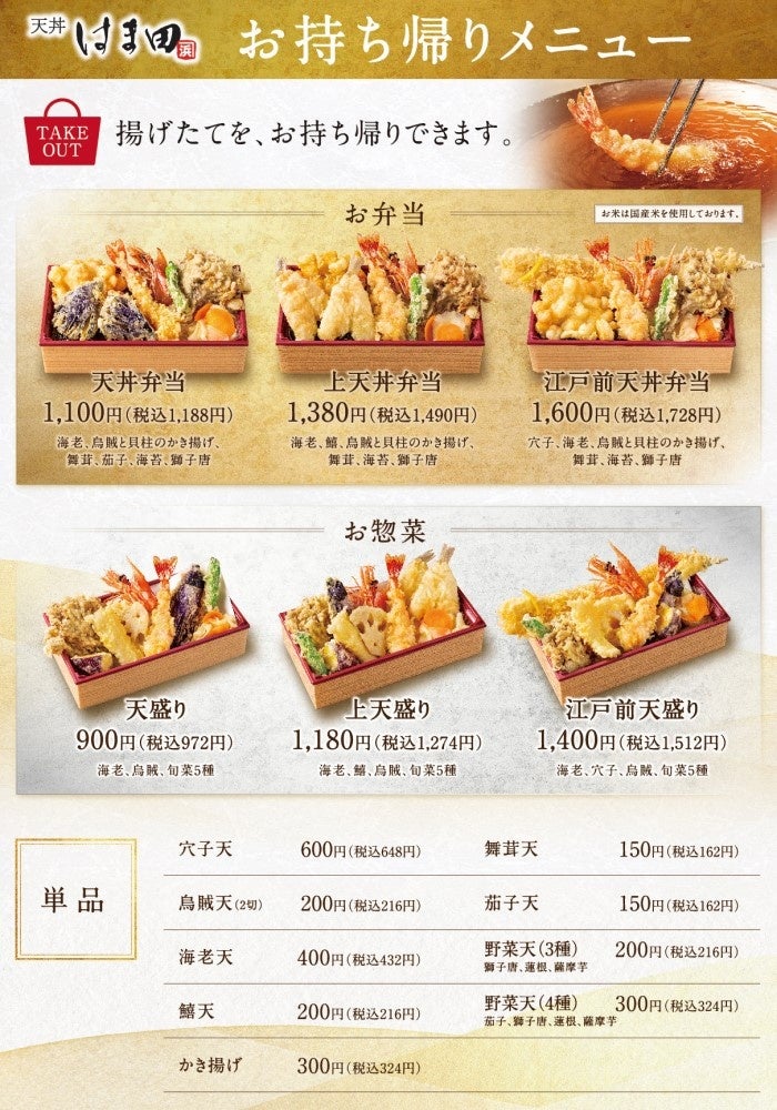 出来立ての店内飲食だけでなく、テイクアウトでもご利用いただけます。