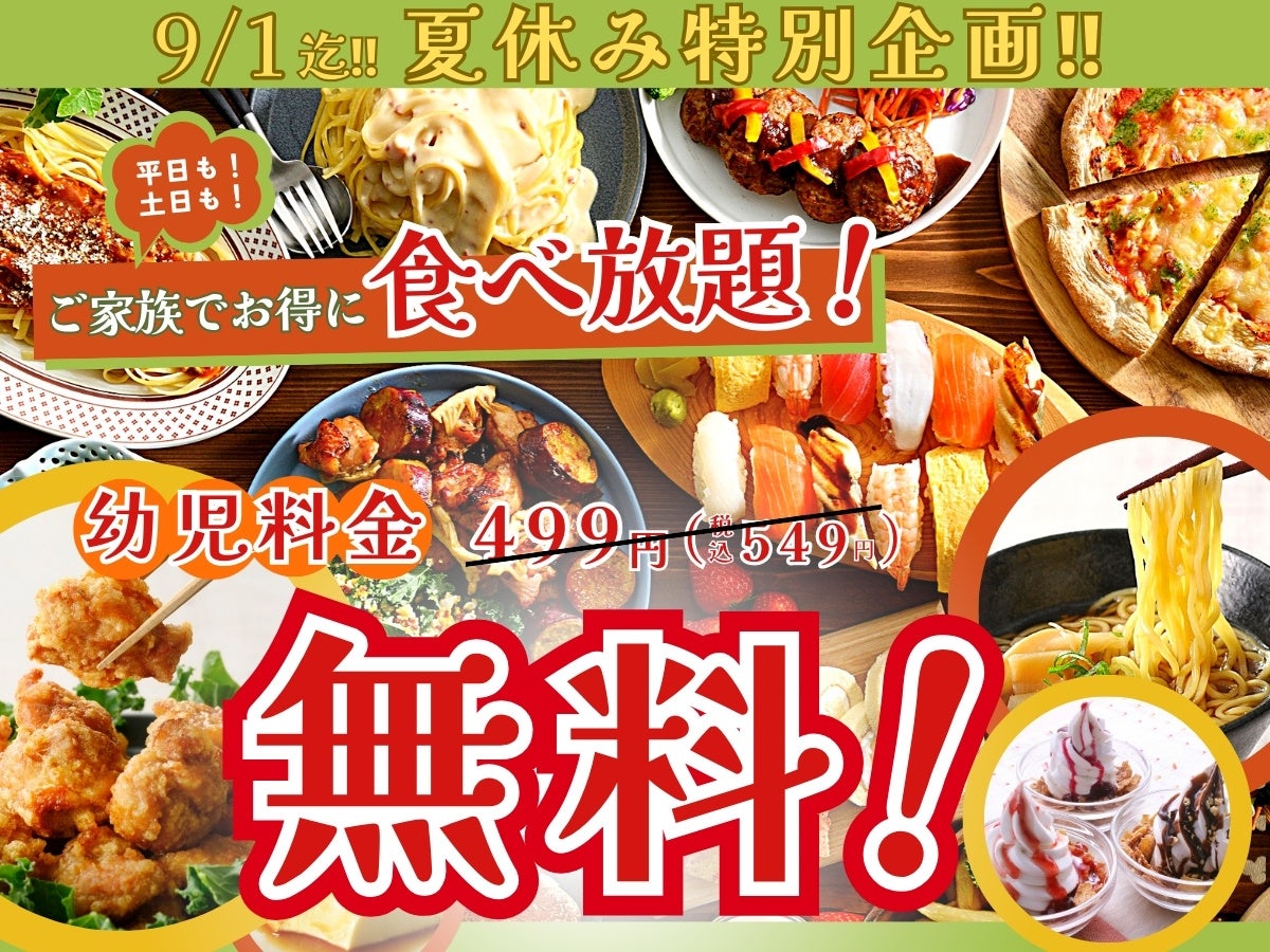ぜひ今年の夏休みは、ご家族でリーズナブルに!お得に食べ放題をお楽しみください。