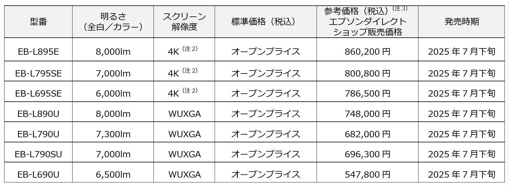 (注3)エプソンダイレクトショップ(エプソン直販サイト)の販売価格(税込)は、2025年6月4日現在のものであり、各販売店での販売価格を拘束するものではありません。各販売店における販売価格は、各販売店にお問い合わせください。