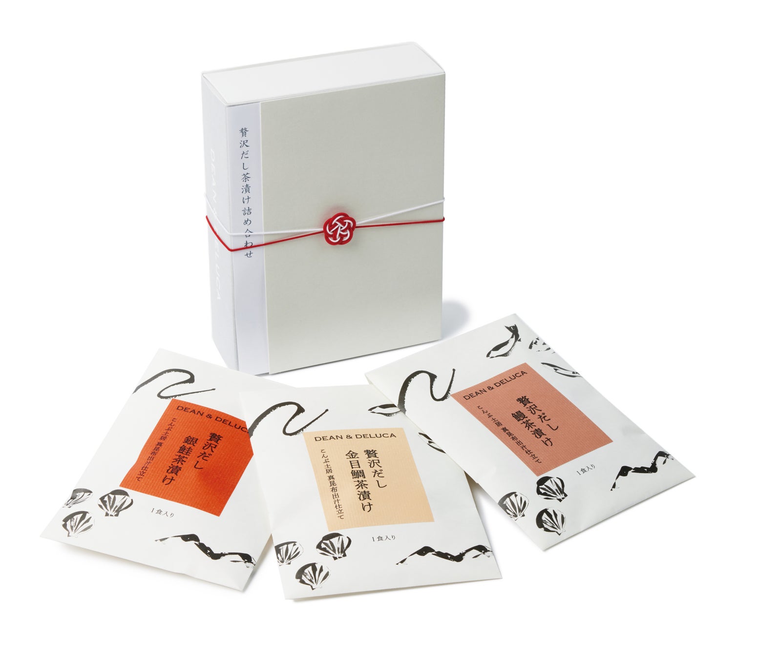 新鮮な魚介を旨みのしっかりとした真昆布だしで仕立てた味わい深い茶漬け。特別な贈りものにもふさわしい、贅沢な具材を使っています。温かいごはんの上に具をのせ、お湯を注ぐだけで贅沢な一杯をおたのしみいただけます。