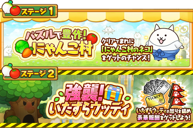 ステージ「パズルで豊作!にゃんこ村」をクリアで「にゃんこ村のネコ」をゲットのチャンス!