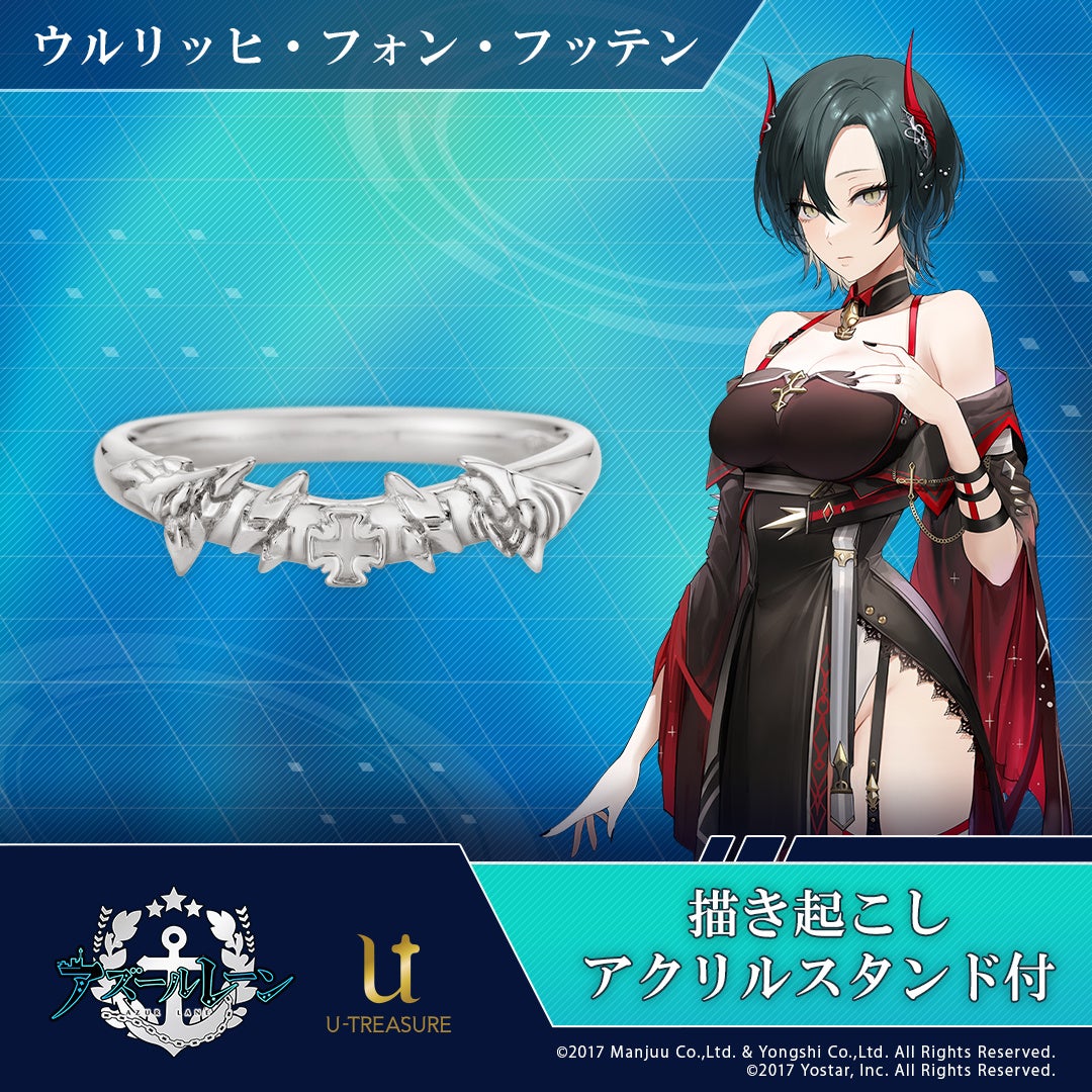 株式会社ユートレジャー(本社:東京都新宿区、代表取締役:伊藤 崇史)は、スマートフォン向けゲームアプリ「アズールレーン」とのコラボレーションアイテム「モチーフリング(指輪)」全3種類(フッド、島風、ウルリッヒ・フォン・フッテン)の予約受け付けを、2024年12月9日(月)~2025年1月16日(木)の期間、ユートレジャーオンラインショップ、ユートレジャーコンセプトストア池袋にて行います。