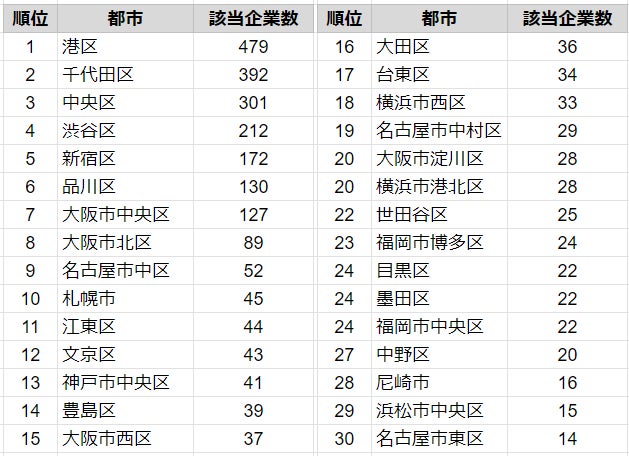 都市別ランキング公開!最も上場企業の本社が集まるエリアはどこ?/SalesNow DBレポート