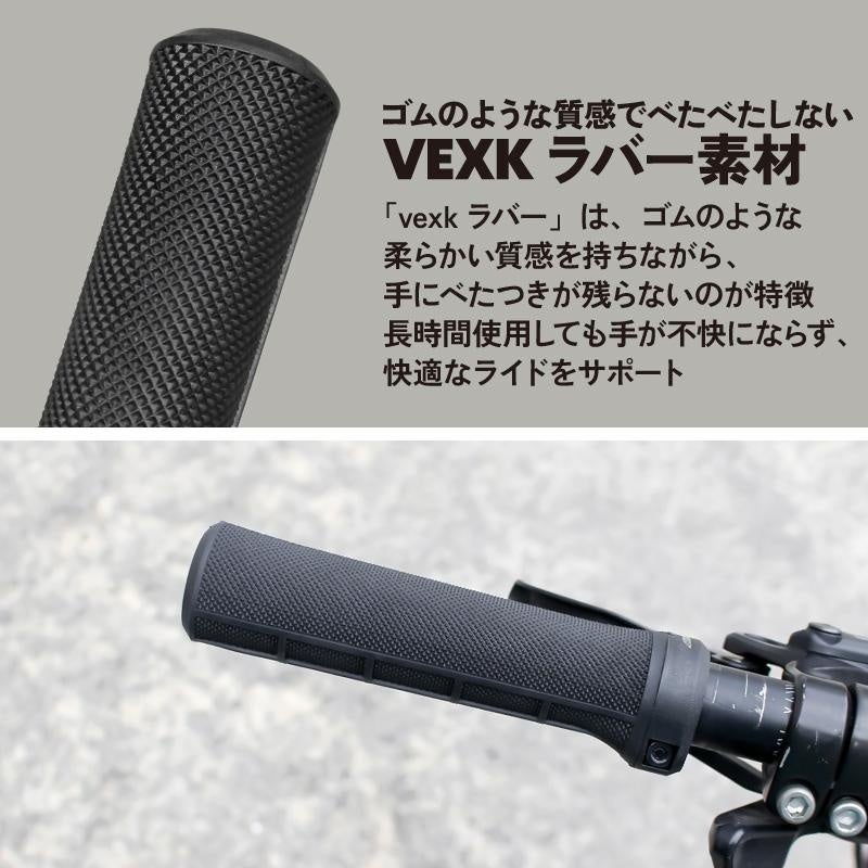 採用されている「vexkラバー」は、ゴムのような柔らかい質感を持ちながら、手にべたつきが残らないのが特徴です。 長時間使用しても手が不快にならず、快適なライドをサポートします。