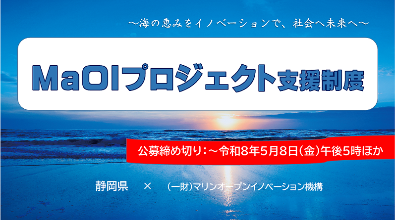 一般財団法人マリンオープンイノベーション機構(※MaOI-FSのみ) 054-340-1800、info@maoi-i.jp
