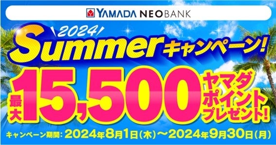 株式会社ヤマダホールディングスのグループ企業である株式会社ヤマダデンキ(本社:群馬県高崎市、代表取締役社長:上野 善紀、以下、ヤマダデンキ)は、提供している銀行サービス「ヤマダNEOBANK」において、2024年8月1日(木)より「Summerキャンペーン」を開催いたします。