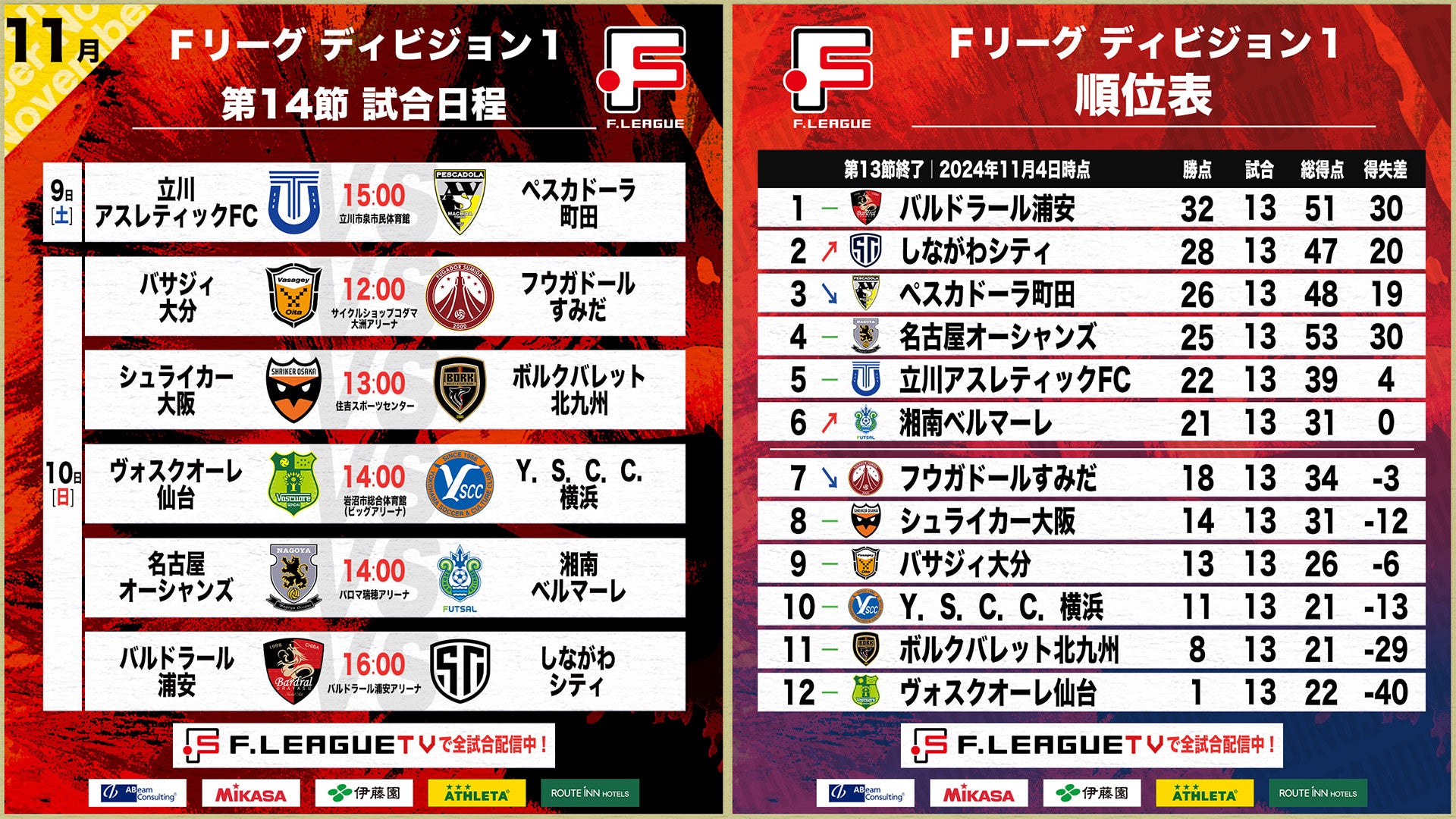 【F1第14節|11月9日〜10日 試合情報】会場情報/チケット情報/注目ポイントは?【Fリーグ2024-2025 ディビジョン1】今こそ最高のフットサルを