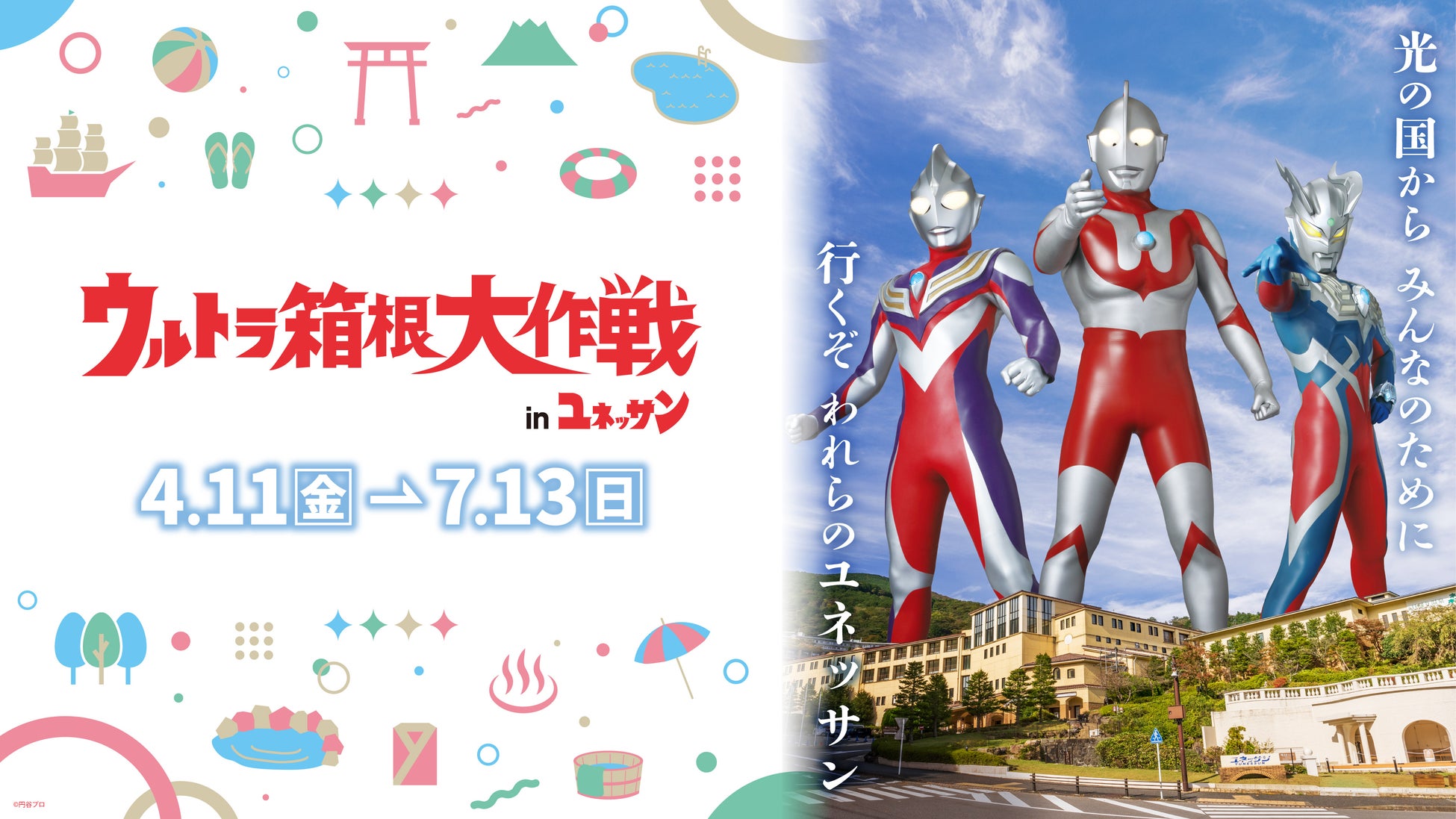 箱根小涌園ユネッサン(所在地:神奈川県足柄下郡箱根町ニノ平1297、支配人:松山 元信 以下:ユネッサン)では、ウルトラマンシリーズをフィーチャーしたスペシャルイベント「ウルトラ箱根大作戦inユネッサン」を2025年4月11日(金)より開催いたします。