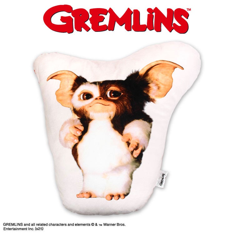 「ギズモ」の実写デザインがキュートなダイカットのクッションは、膝に置いて抱きかかえるのにぴったりのサイズ感です。
