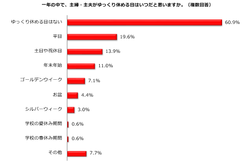 1.一年の中で、主婦・主夫がゆっくり休める日は「ない」60.9%