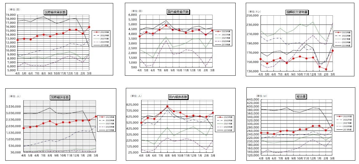 ●国際線貨物便の発着回数は30,049回(前年度比76%、2019年度比123%)となりました。