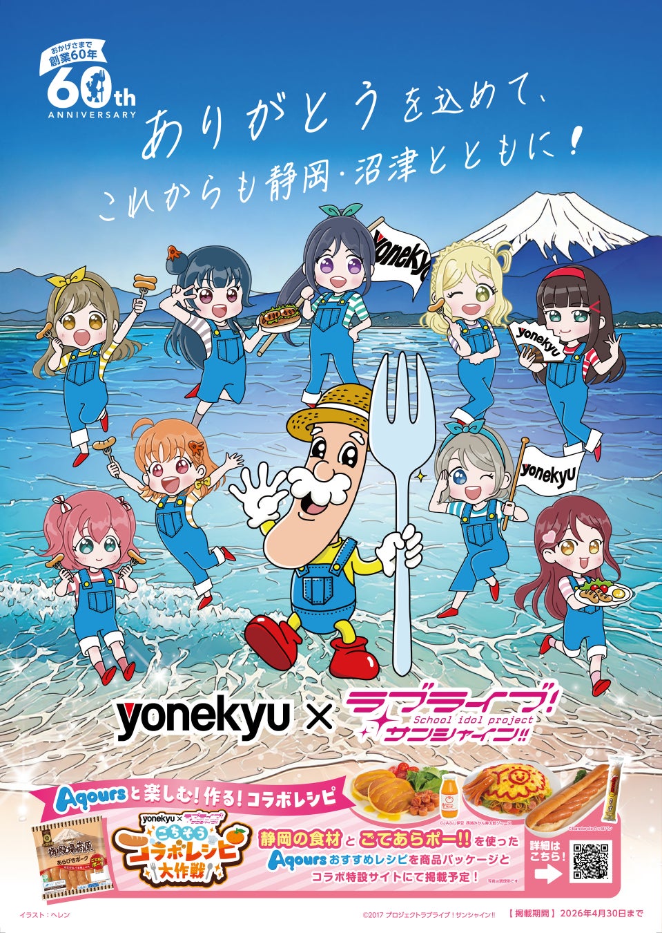 米久株式会社(静岡県沼津市)は、創業60年の節目に地元沼津の皆様への感謝を形にすべく、沼津市を作品の舞台とする、TVアニメ「ラブライブ!サンシャイン‼」とコラボし、更なる地域活性化に貢献していきます。