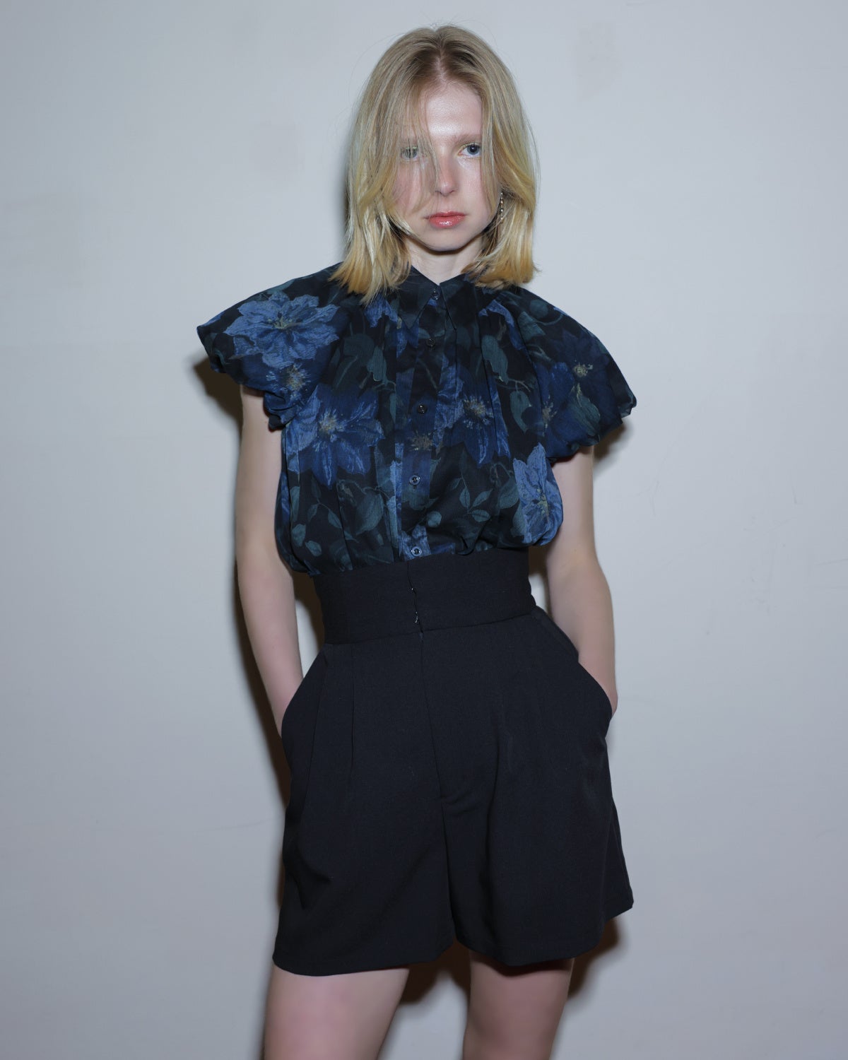 ふんわりと膨らんだバルーンスリーブが女性らしさをぐっと引き上げつつ、襟が顔周りを引き締めて、大人っぽさをプラスしてくれます。
