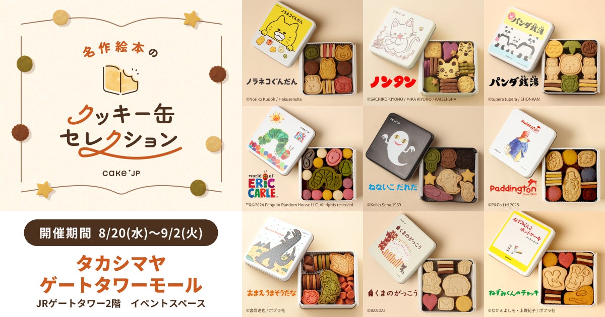 ケーキ・スイーツ専門通販サイト「Cake.jp(ケーキジェーピー)」を運営する株式会社Cake.jp(本社:東京都新宿区、代表取締役:高橋 優貴)は、8月20日(水)から9月2日(火)の14日間、タカシマヤ ゲートタワーモールにてCake.jpと大人気の絵本がコラボしたオリジナルクッキー缶を購入いただけるポップアップストア「名作絵本のクッキー缶セレクション by Cake.jp」を期間限定で出店します。