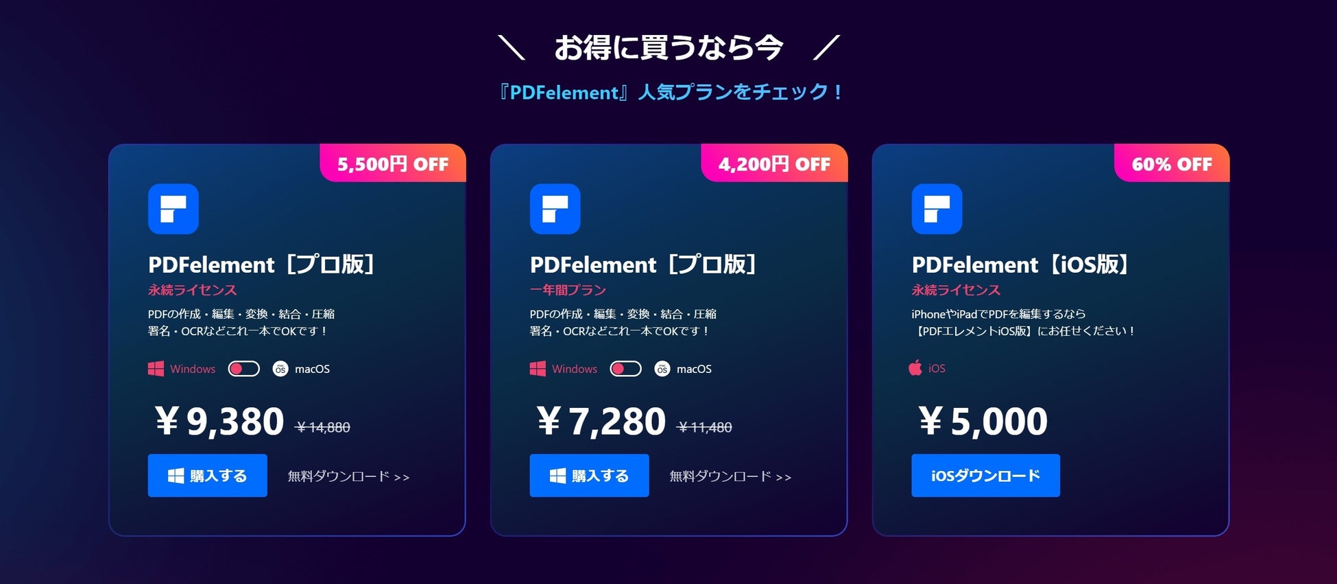 - キャンペーン内容:特設ページにてPDFエレメントを含む製品が【 5,500円OFF 】