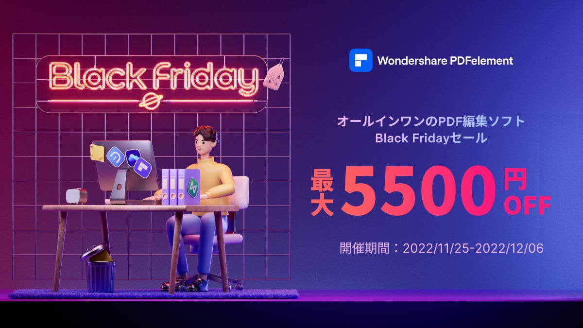 「PDFエレメント」がブラックフライデーセールを開始!ずっと使える「買い切りタイプ」をはじめ、様々な製品を特別価格でご用意。
