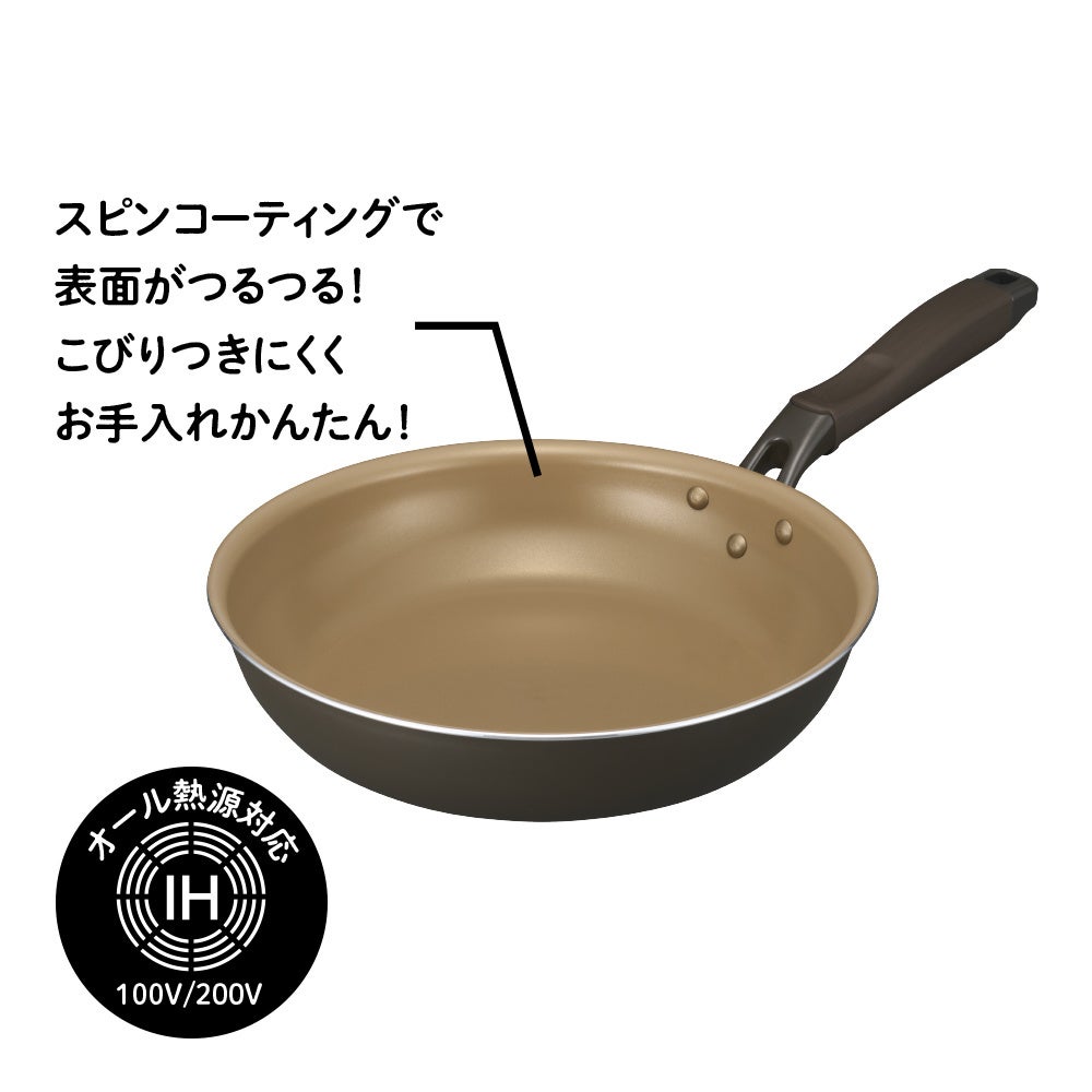 本製品は、フライパンの内面にふっ素コーティングをスピンコート仕上げで施しています。