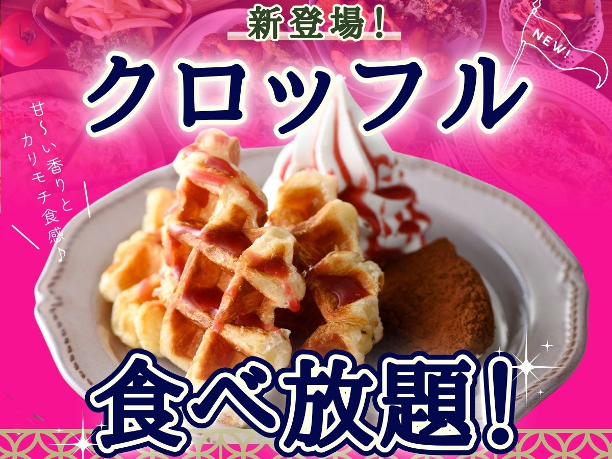そしてこの度、新食感スイーツの『クロッフル』がデザートコーナーに新登場いたしました!
