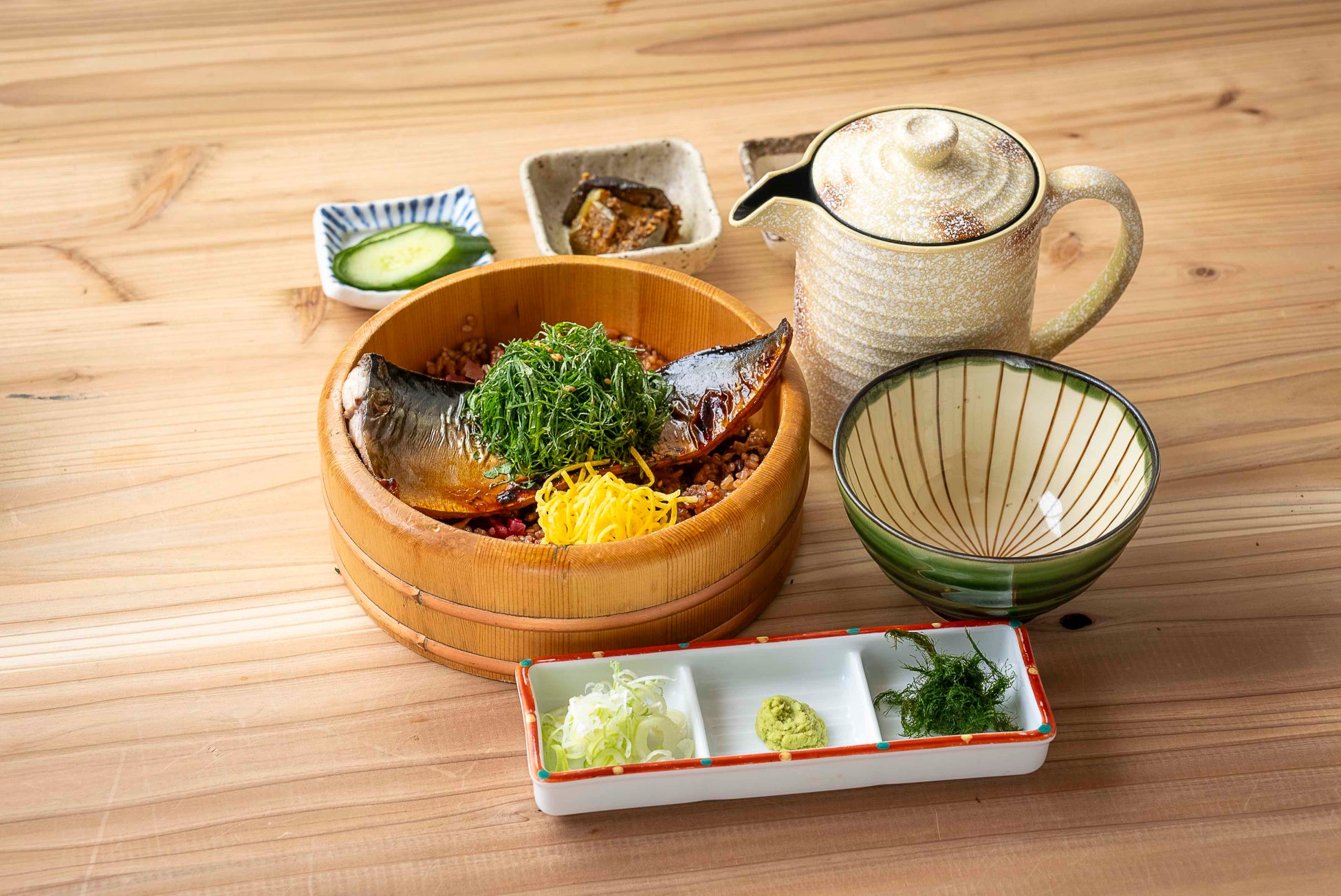 旬の脂の乗った秋サバを甘辛く香ばしく焼き上げ、もちもち食感の寝かせ玄米とひつまぶしに。最初はそのままお召し上がりください。その後は、お好みで薬味やお出汁を加えてお楽しみください。