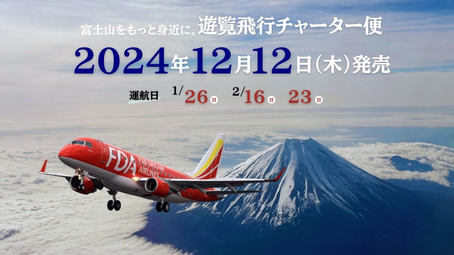 株式会社フジドリームエアラインズ(略称:FDA、本社:静岡県静岡市、代表取締役社長:楠瀬 俊一)は、冬ダイヤの一部期間中、「名古屋(小牧)空港発着の富士山遊覧飛行」を「チャーター便」として運航します。