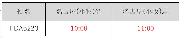 区 間:名古屋(小牧)空港発着