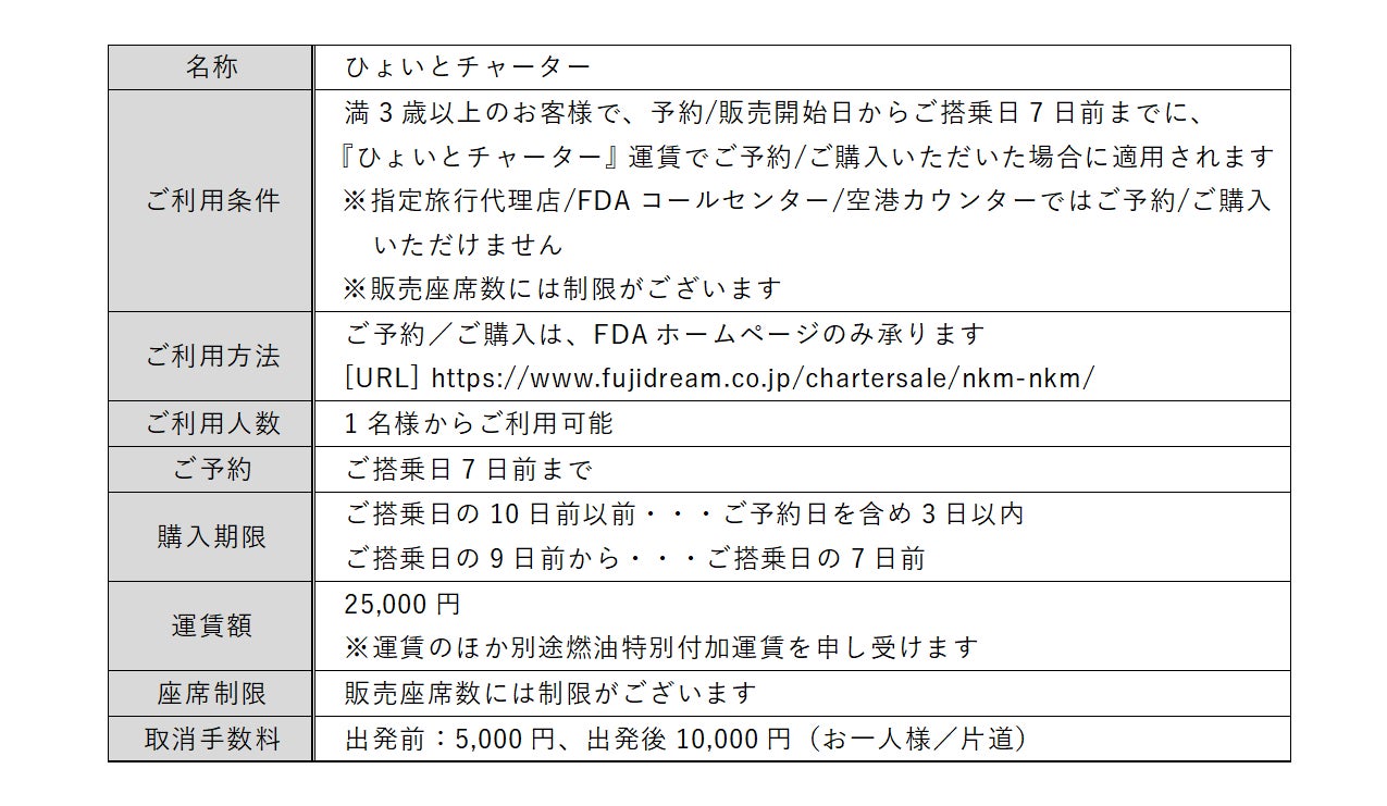 FDA 「遊覧飛行チャーター便」の個人向け運賃の設定について