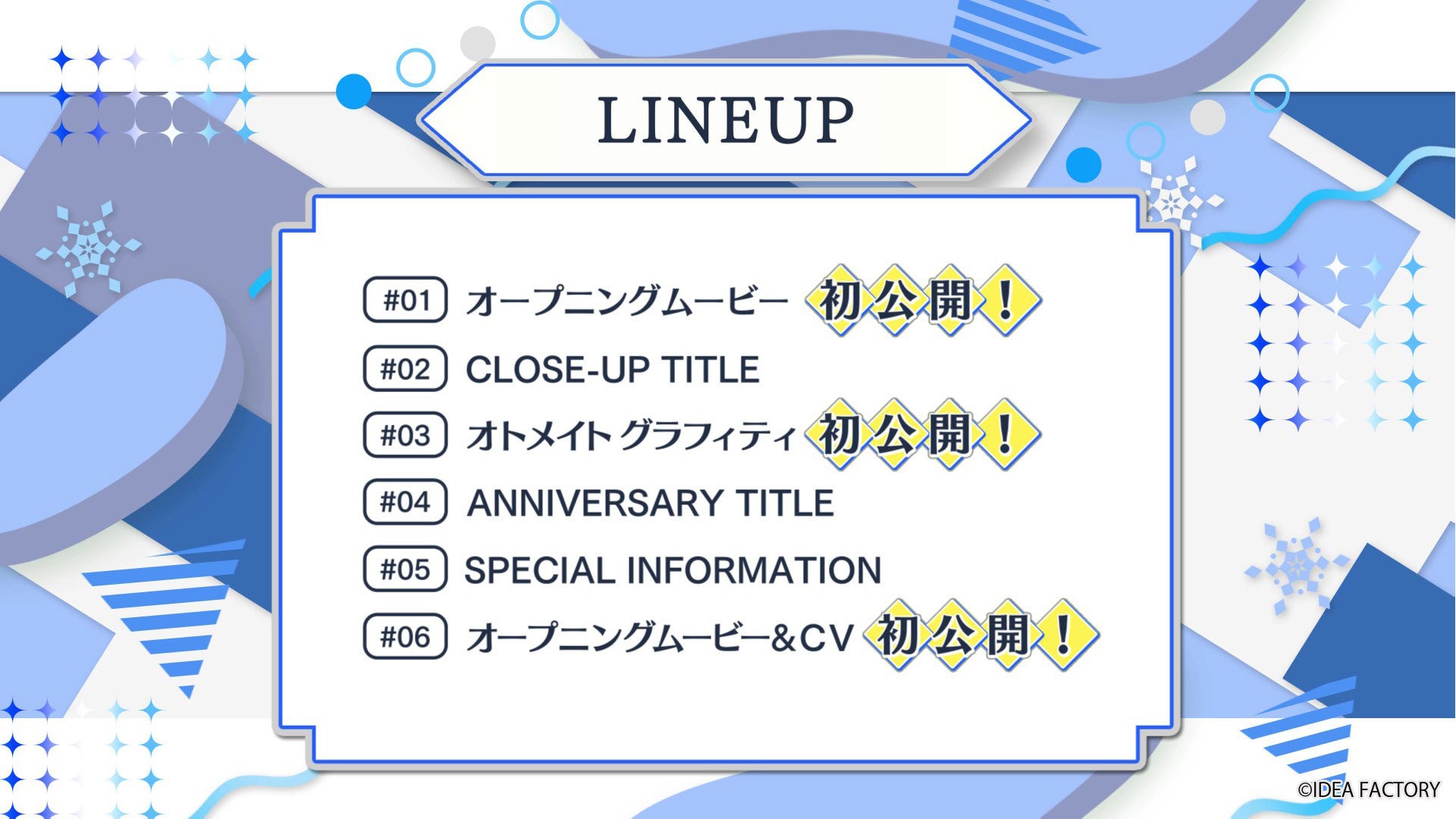 過去発表したタイトルなどをクローズアップやプレゼント企画など見逃がせない情報をまとめた配信番組です。