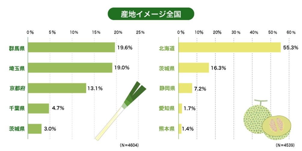 【第1回 農水産物の産地イメージに関する調査】“ねぎ”といえば「群馬」、“メロン”といえば「北海道」 産出額と直結しない産地イメージ