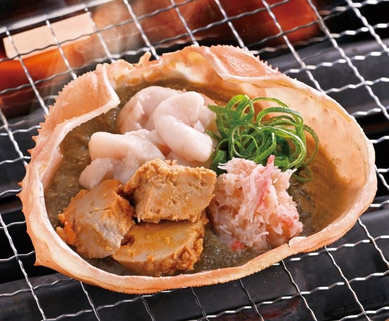 そして「おすすめ冬限定!冬将軍!蟹味噌甲羅焼」は、グランドメニューの蟹味噌甲羅焼に冬の味覚である「あん肝」「真鱈白子」をプラスし、より贅沢な一品に仕上げました。“冬将軍”の名にふさわしい、豪快な冬限定メニューです。