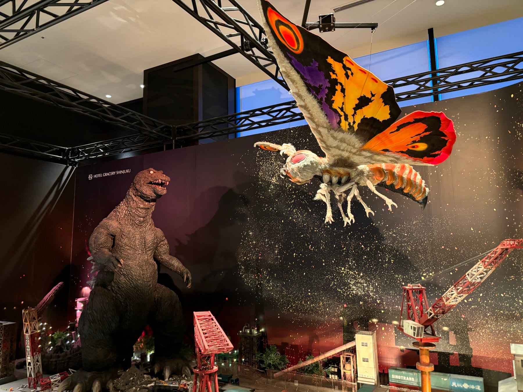 【ホテルグレイスリー新宿】ゴジラとモスラの鳴き声が響く!2025年第一弾ジオラマ登場 ゴジラとモスラのリアルな対峙が目の前で!!