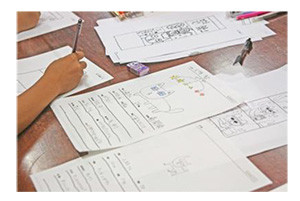 絵が苦手だけどマンガ好き、そんなひとにおすすめのワークショップ。4コマ特訓シートをつかって4コママンガをつくります。