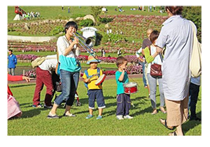 完成後は参加者も楽団のメンバーとして、芝生の広場をみんなでパレードします。
