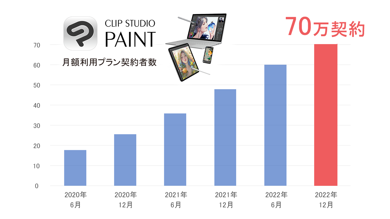 イラスト・マンガ・Webtoon・アニメーション制作アプリ「CLIP STUDIO PAINT」の全世界におけるサブスクリプションモデルの契約数が70万契約に