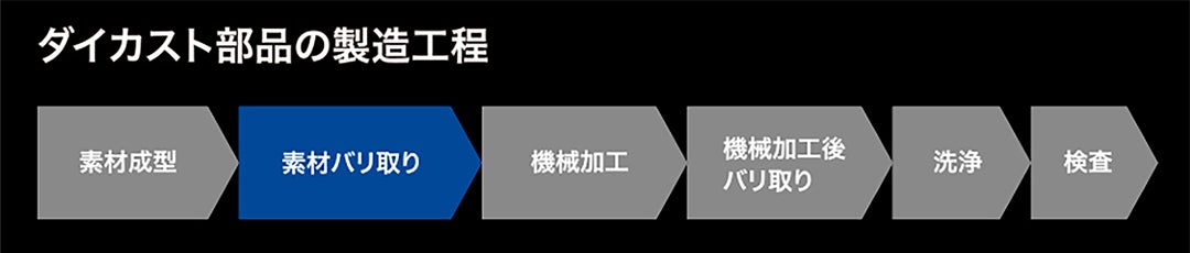 ダイカスト部品のバリ取りは手作業で行われることが多く、人手不足により、作業者の確保が難しくなっている。また、ロボットやNC加工機によるバリ取りでは、プログラムの作成や加工経路の修正に時間を要するため、容易に短時間で工程を立ち上げることができるバリ取り専用加工機が求められている。今回発売する新モデルでは、ブラザー独自の加工立ち上げ機能により、効率的なバリ取り作業を実現する。