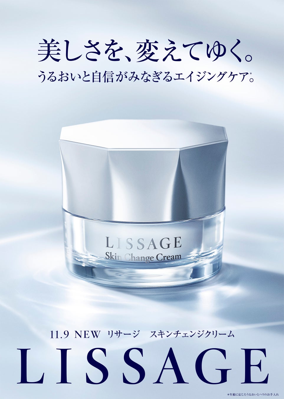 肌をうるおすコラーゲン研究を30年以上積み重ね、個肌に寄り添ってきた『LISSAGE(リサージ)』から、みずみずしく軽やかなつけ心地で乾燥によってキメが乱れた肌に密着し、うるおいに満ちたなめらかな美肌へ導くエイジングケア*クリーム「リサージ スキンチェンジクリーム」を2024年11月9日(土)より発売いたします。