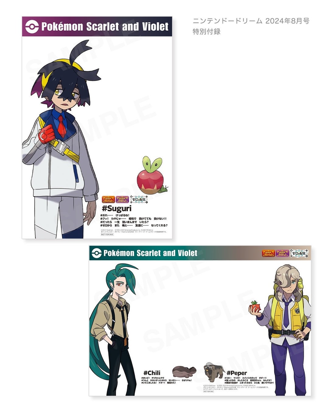特別付録は『ポケットモンスター スカーレット・バイオレット ゼロの秘宝』のスグリ、ペパー&チリのクリアポストカード2枚。