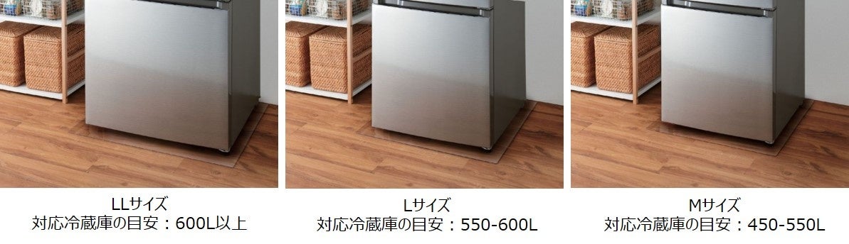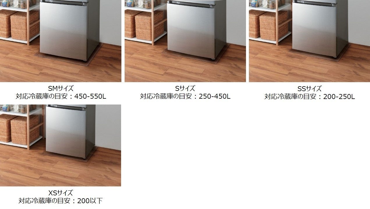 フローリングをへこみや汚れ、傷から守る。冷蔵庫のサイズに合わせて選べる7つのサイズの防水・防傷 冷蔵庫マットを新発売