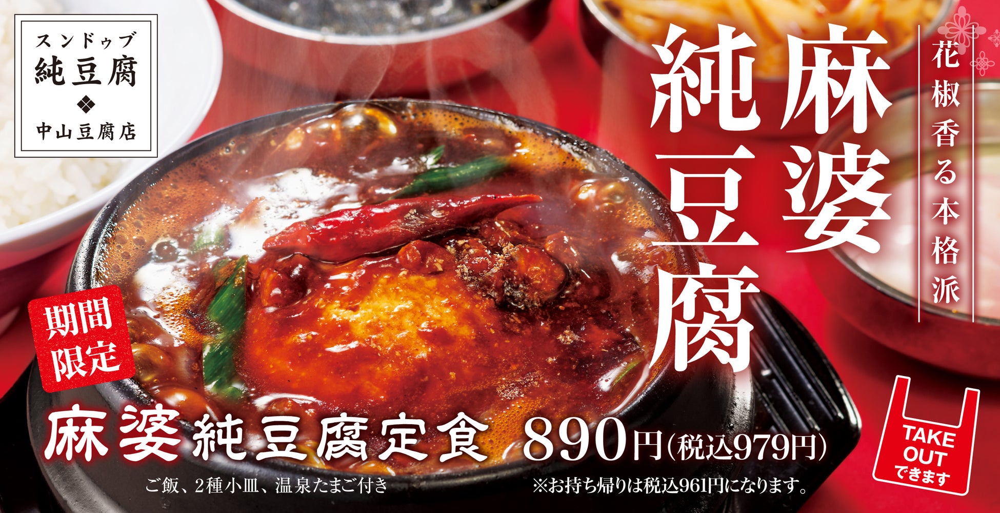 とんかつ専門店「かつや」などを展開するアークランドサービスホールディングス株式会社の⼦会社、「⾁めし岡もと」などを運営する株式会社トビラダイニング(本社:東京都千代⽥区/代表:嶺岸 悟)は、スンドゥブ定食専門店「純豆腐 中山豆腐店」にて、期間限定メニュー「麻婆純豆腐定食」を2022年11⽉28⽇(月)より販売を開始いたします。