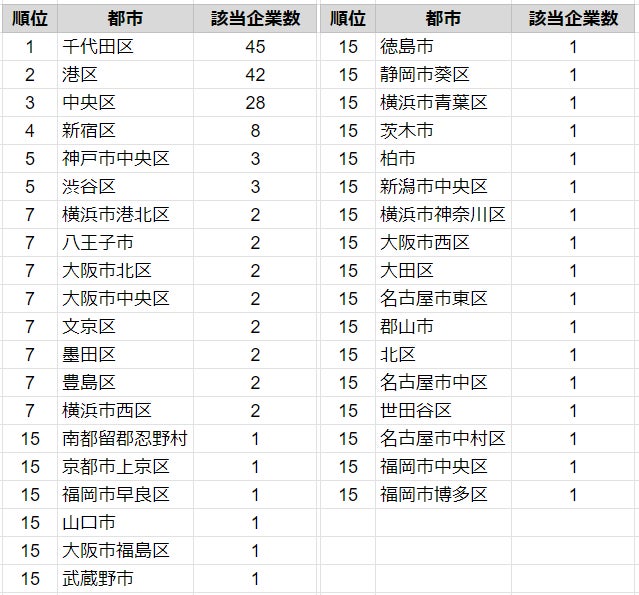 高収入企業が集まるエリア発表!平均年収1,000万円超の上場企業が多い都市ランキング/SalesNow DBレポート
