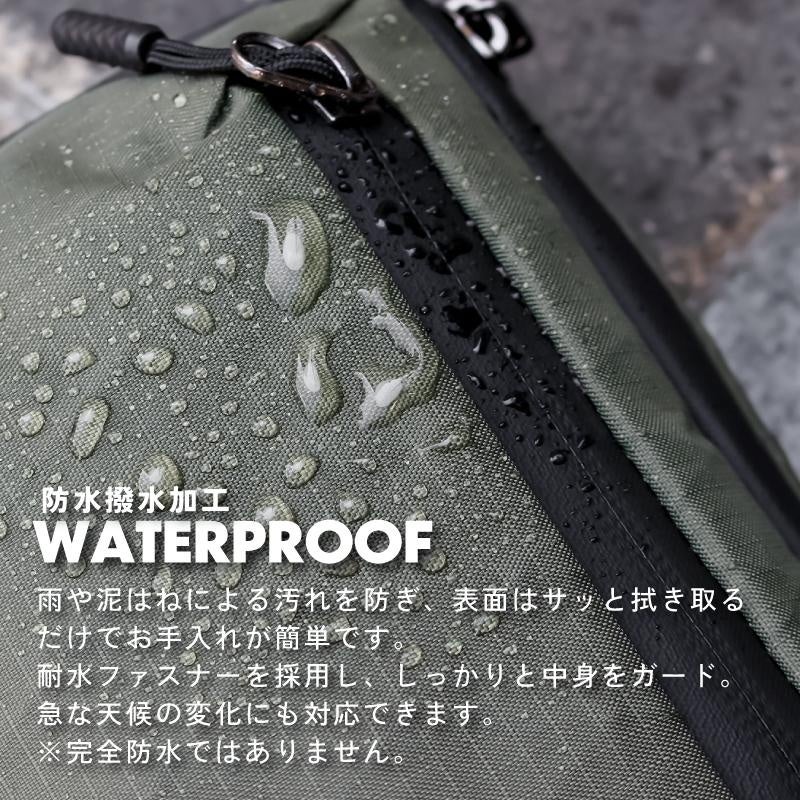 さらに、防水撥水性のある表地と耐水ファスナーを採用し、小雨程度ならしっかりと中身をガードし、急な天候の変化にも対応できます。