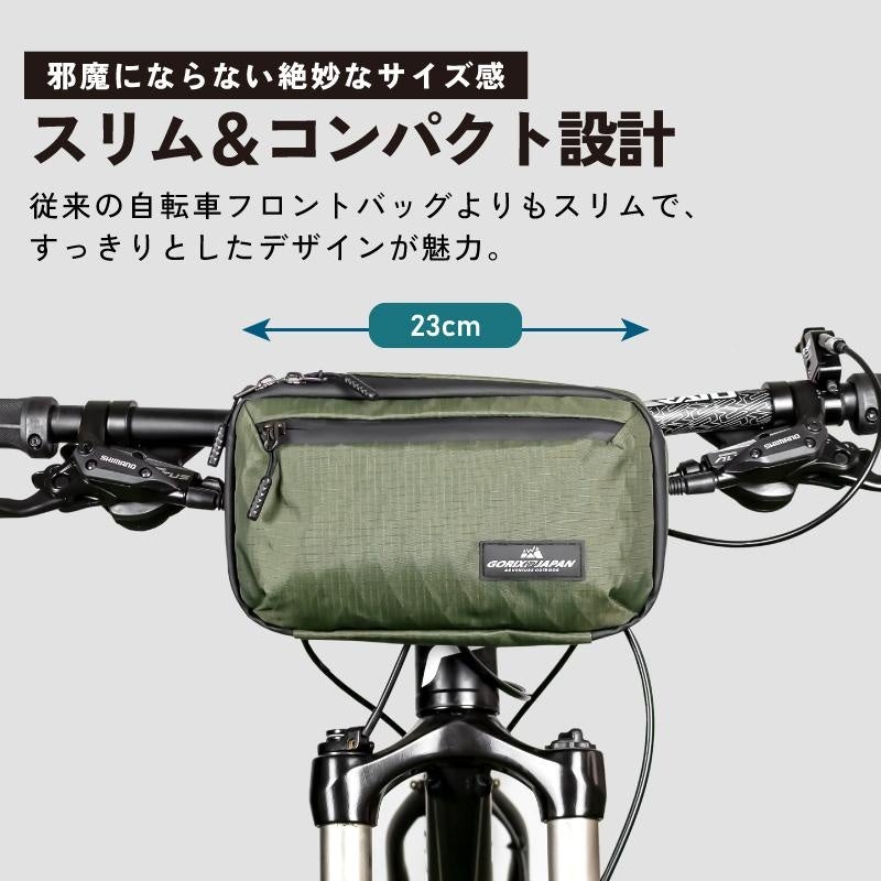 従来の自転車フロントバッグよりもスリムで、すっきりとしたデザインが魅力です。