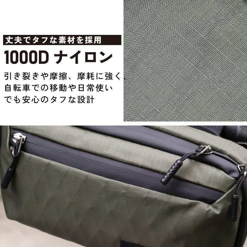 高強度の1000Dナイロン素材を採用し、引き裂きや摩耗に強く、