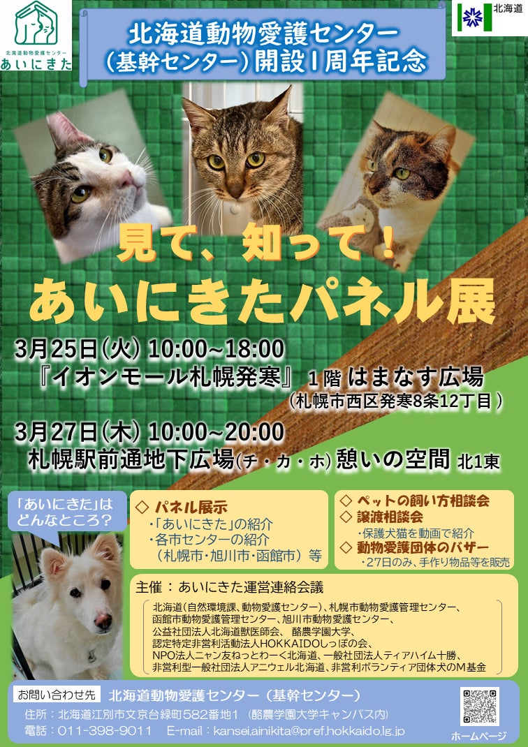 北海道動物愛護センター「あいにきた」開設1周年記念 見て、知って!あいにきたパネル展