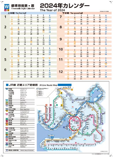 JR西日本時刻表スタイルカレンダー 2024 路線図付き