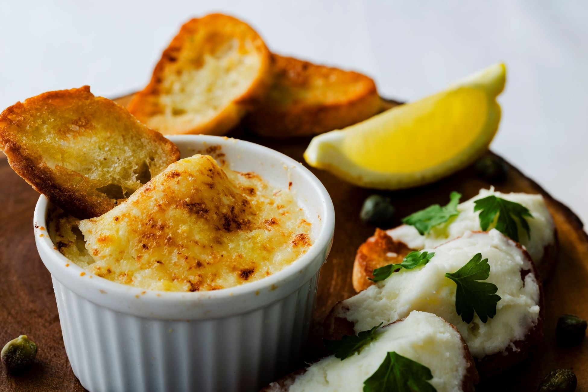 ブランダードとはフランス語で「混ぜる」という意味。ふっくらと焼き上げた北海道産ホッケのほぐした身とホクホクのジャガイモを混ぜ合わせ、チーズと共に香ばしく焼き上げました。ぜひ、バゲットと一緒にお召し上がりください。
