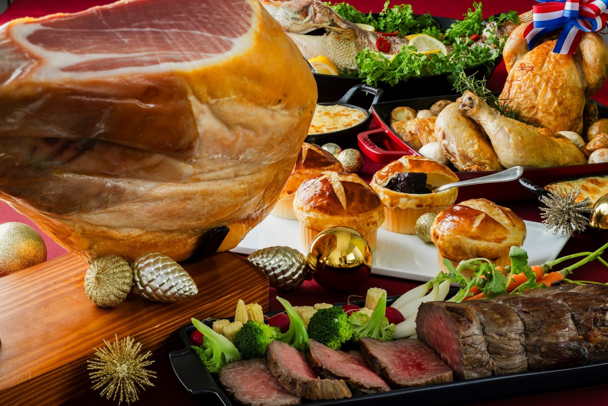 今年のクリスマスは、国産牛ローストビーフや瀬戸内産 真鯛の丸ごと香草焼きなどの豪華食材をキッチンライブでご用意。クリスマスブッフェで思い出に残る1日を。