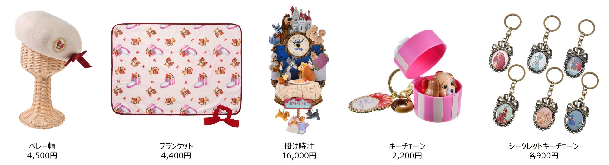 ラインナップは、立体的なリボンがポイントのセーターやベレー帽などのファッションアイテムをはじめ、ルームウェア、ルームソックス、ブランケットといった、落ち着いた配色や素材にもこだわったホーム雑貨が充実。レディのぬいぐるみは、ストライプ柄のボックスに入った特別仕様。好奇心いっぱいのつぶらな瞳やあどけない表情が、思わず心をくすぐります。さらに、掛け時計は、レディとトランプがレストランでスパゲティを食べるロマンティックなシーンをメインに、トニーとジョー、トラスティやジョックなど、個性豊かなキャラクターたちが勢揃いしたアニバーサリーにぴったりなアイテムです。そのほか、シークレットコレクションから、アンティーク調のフレームの中にキャラクターをあしらった全6種のキーチェーンを展開します。