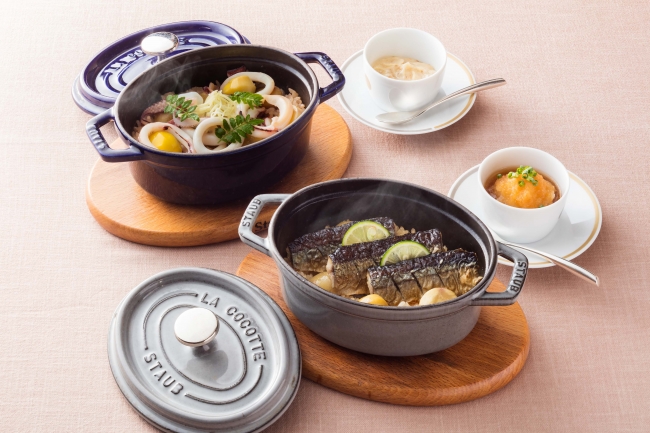 また名物パーコー麺のブイヨンで炊き上げる「ORIGAMIココットごはん」も秋季限定の味わいをお楽しみいただけるほか、ラウンジでは洋梨のスパークリングやマロンシェイクなど4種のオータムドリンクを取り揃えます。
